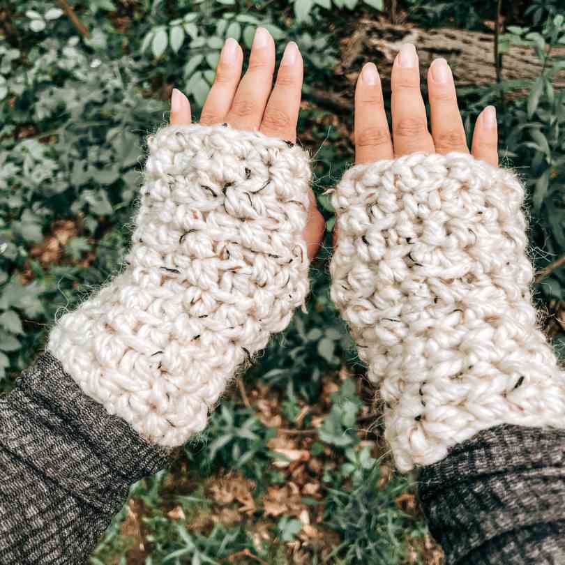 "These fingerless gloves can work up within an hour for experienced crocheters! If you are a beginner, no worries friend! Once you do a couple rounds you will be pro.