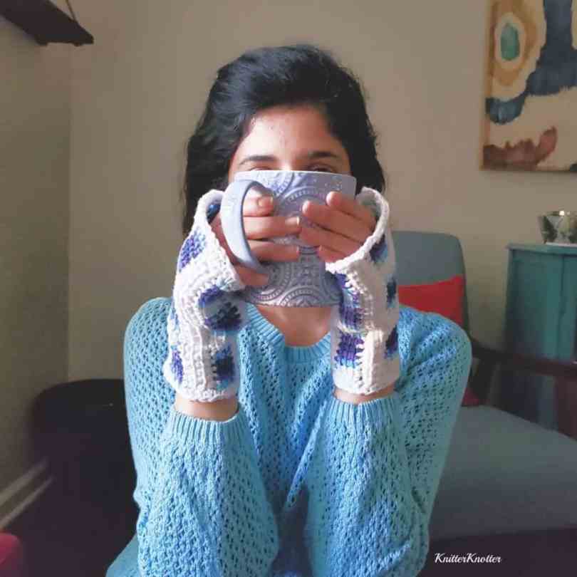 "I designed these Tunisian crochet mittens so anyone can try Tunisian crochet using just a regular crochet hook. The pattern is made in panels joined as you go to form a cozy mitten, and it’s fully adjustable for length and width. You can use different colors for each panel to make them fun and unique, and no special hooks are required, perfect for beginners or anyone looking to try something new!" (Arunima from Knitter Knotter)
