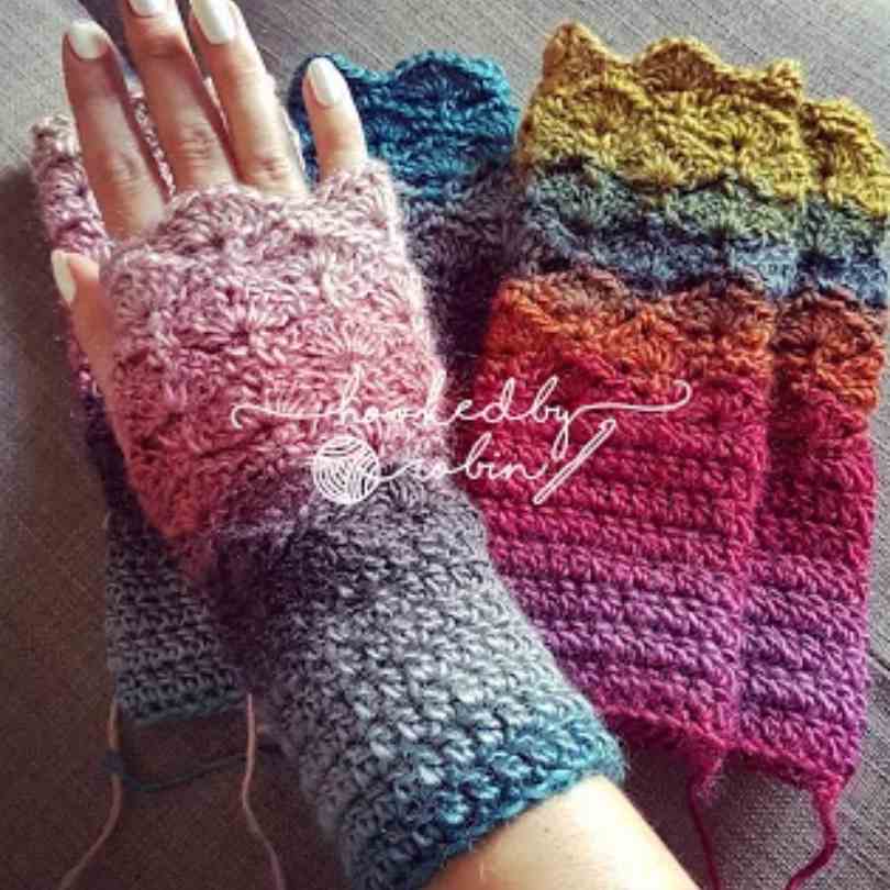 Fantail Shell Stitch Fingerless Gloves [Free Video Tutorial & Written Pattern!] by Hooked by Robin