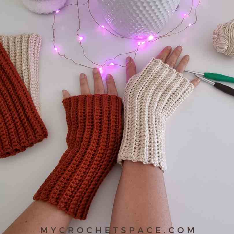 "I’m excited to share this free crochet fingerless gloves pattern! It’s simple, beginner-friendly, and uses a stitch I often use for ribbing on sweaters and hats. The stitch creates a soft, stretchy fabric that makes these gloves super comfortable and easy to wear. I love how a small change in stitch can give a fresh look to a classic design!" (Olga from My Crochet Space)