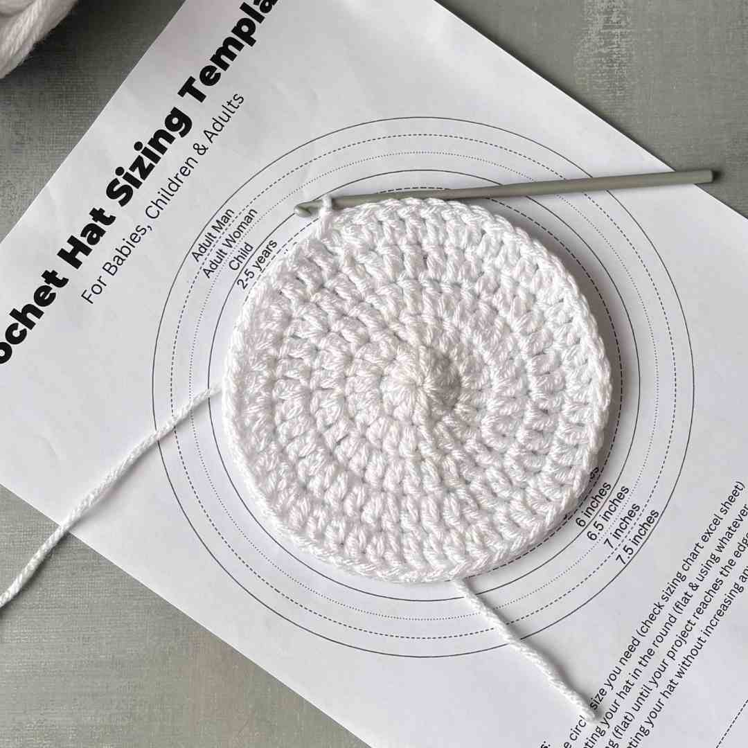 Check the sizing of your top-down crochet hats & beanies using the chart or simply place the crocheted crown circle on the template to check sizing.